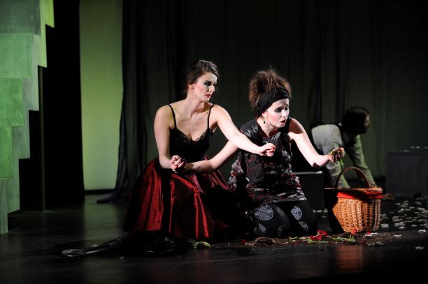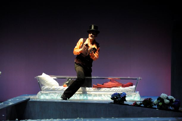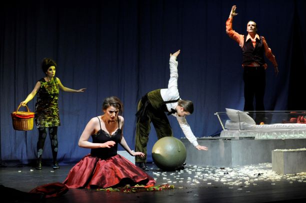Dieses Figurenensemble hetzt Christian Jost in seiner auf Roland Schimmelpfennig basierenden Oper „Die arabische Nacht“ durch eine Traumlandschaft aus Sehnsucht, Leidenschaft und Verzweiflung. Im Reigen der Bilder ihres Unterbewussten kommen sie dort kaum zur Ruhe – und zueinander schon gleich gar nicht. Denn das zwischenmenschliche Beziehungsgeflecht erweist sich als undurchdringliches Labyrinth. Was eben noch hier war, ist schon längst wieder dort – und so stellt sich die Frage, ob es angesichts dessen überhaupt noch einen Ausweg gibt.